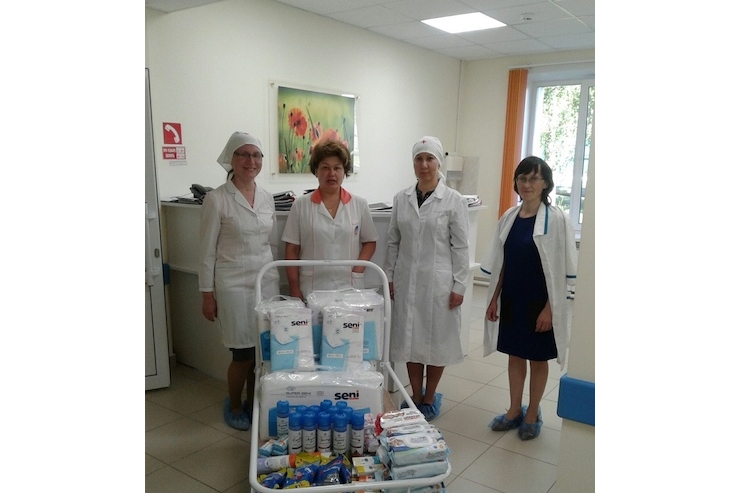 Сестры обошли каждую палату, подопечным были розданы влажные салфетки, ватные палочки, бритвенные принадлежности, мыло. Для отделения были переданы памперсы для взрослых, впитывающие пеленки, влажные салфетки, освежители воздуха.