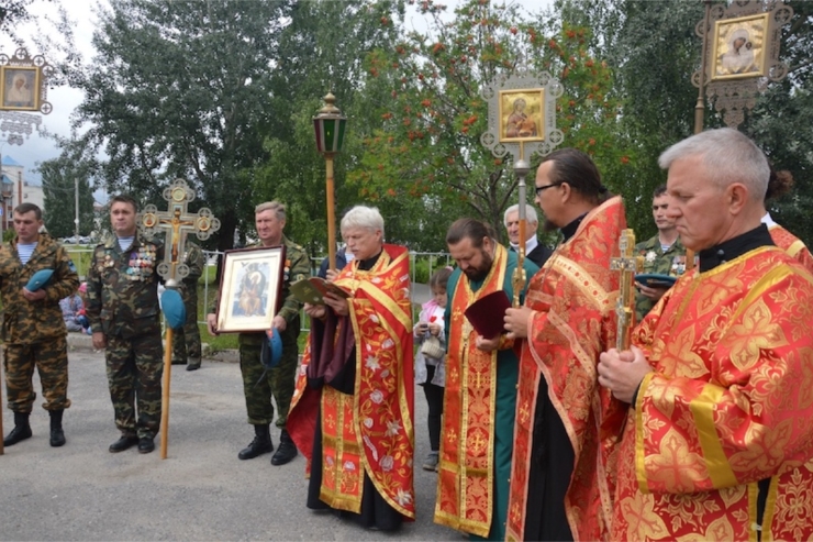 Далее с благословления Митрополита Чебоксарского и Чувашского Варнавы прошел Крестный ход с иконами в котором приняли участие десантники, военнослужащие, участники боевых действий Вооруженных сил РФ, представители общественных и ветеранских объединений и верующие горожане.