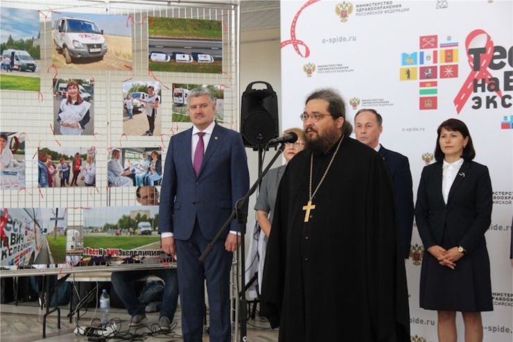 От Чебоксарской епархии в торжественном мероприятии принял участие председатель Епархиального отдела по церковной благотворительности и социальному служению, настоятель храма иконы Божией Матери «Скоропослушница» г.Чебоксары протоиерей Михаил Павлов. Отец Михаил поблагодарил организаторов и участников акции за заботу о людях, напомнил, что здоровье это дар Божий и его надо беречь. Многие тяжелые болезни, вовремя обнаруженные, могут быть вылечены или приведены в длительную ремиссию. ВИЧ и СПИД могут быть поражены в корне, если люди будут целомудренны. Нужно самим быть верным супругам и детей учить целомудрию. Целомудрию, которому учит христианство и другие традиционные религии.