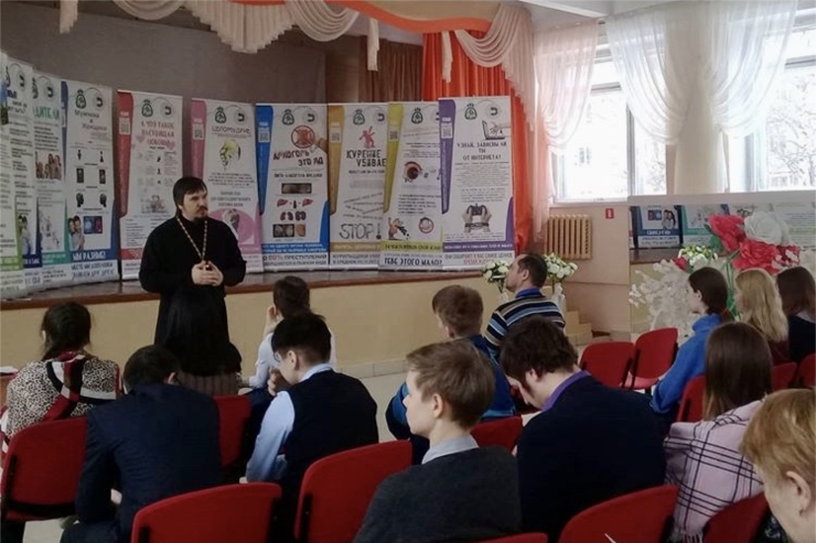 В встрече с старшеклассниками общеобразовательной школы приняли участие руководитель проекта сотрудник Отдела по Церковной благотворительности и социальному служению Чебоксарско-Чувашской епархии Третьякова Н.В. и настоятель храма Сретения Господня с.Чемурша Чебоксарского района протоиерей Максим Курленко.
