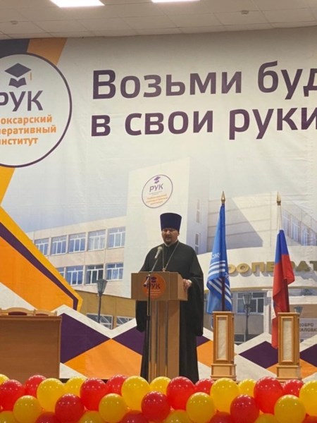 С напутственными словами к первокурсникам обратился протоиерей Николай Иванов секретарь Чебоксарской епархии, настоятель Покровско-Татианинского собора г. Чебоксары, кандидат богословия .