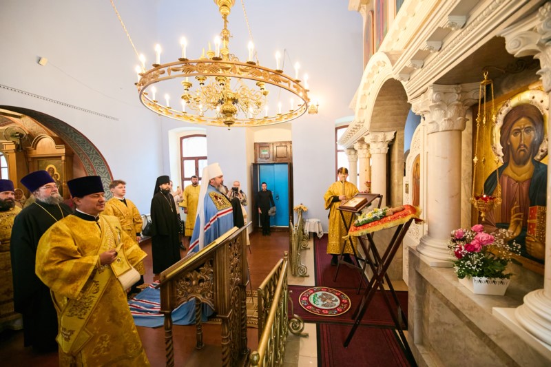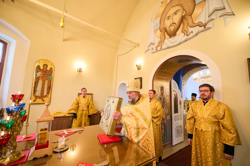 По окончании Литургии со словом приветствия к Его Высокопреосвященству обратился настоятель храма иеромонах Феодосий (Аксенов).
