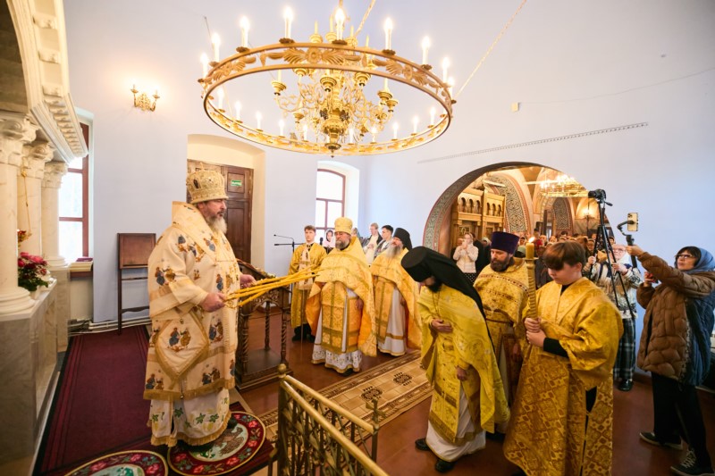 В ответном слове владыка Савватий поблагодарил отца Феодосия за труды по благоукрашению храма и поздравил духовенство и прихожан с воскресным днем.