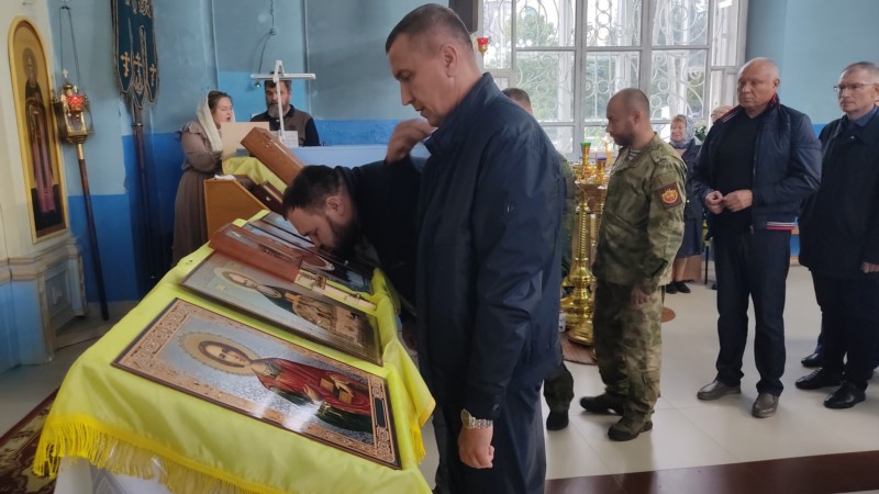 После передачи святынь был отслужен молебен о защите Российского воинства и даровании победы. Его совершил настоятель храма святого Иоанна Кронштадтского протоиерей Николай Медведев.