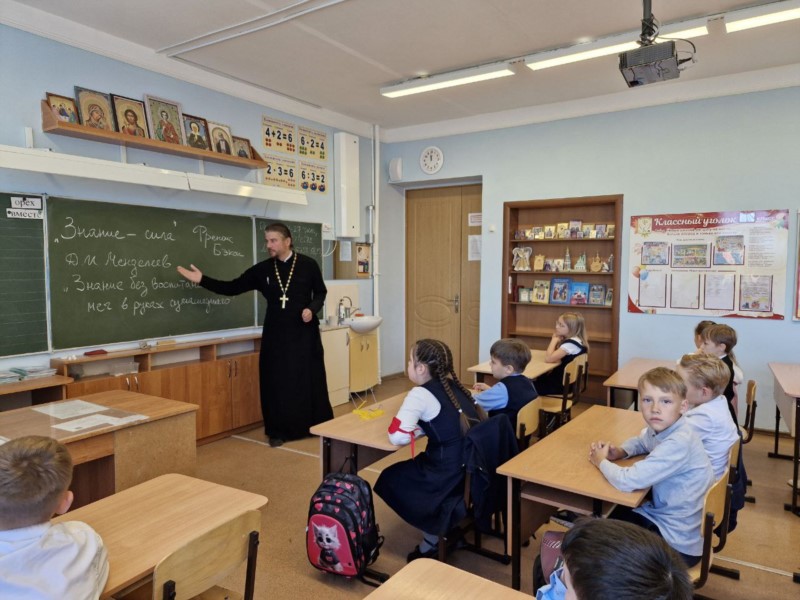 Состоялась встреча руководителя отдела религиозного образования и катехизации Чебоксарской епархии протоиерей Димитрий Нестеренко с обучающимися 3-го православного класса СОШ № 29 г. Чебоксары.