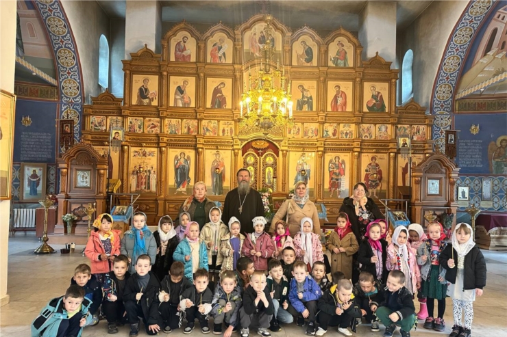 У входа в храм нас радушно встретили его настоятель протоиерей Александр Панзин и матушка Мария. Батюшка рассказал о храме, об иконах, находящихся в нём, о правилах поведения в церкви и православных праздниках. Дети, словно завороженные, слушали его спокойный голос.