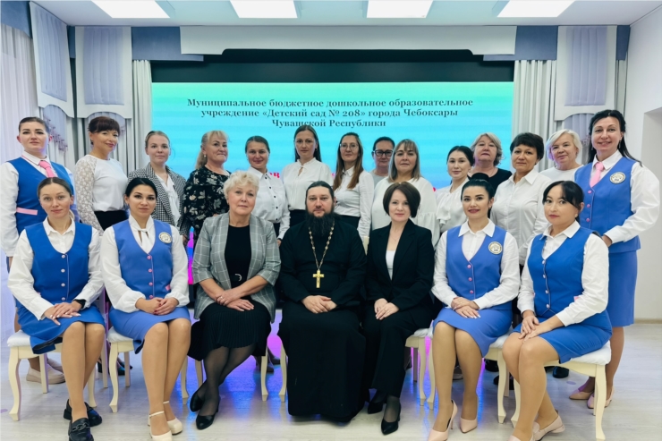 В рамках Сетевого профессионального сообщества педагогов города Чебоксары по духовно-нравственному воспитанию детей дошкольного возраста на базе детского сада №208 прошла встреча педагогов детских садов со специалистом дошкольного сектора отдела религиозного образования и катехизации Чебоксарско-Чувашской епархии Мишиной С.В. и настоятелем храма "Всех святых в земле российской просиявших" протоиереем Игорем Крейтором.