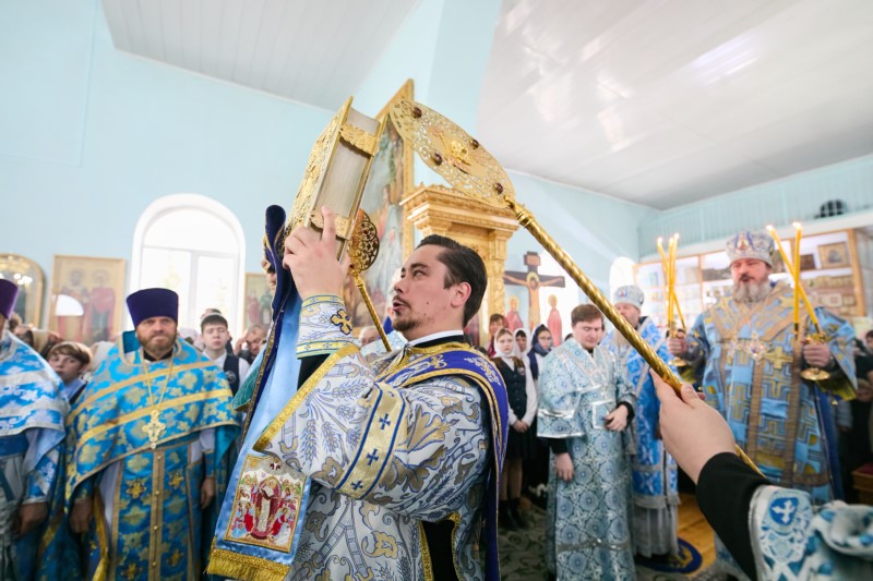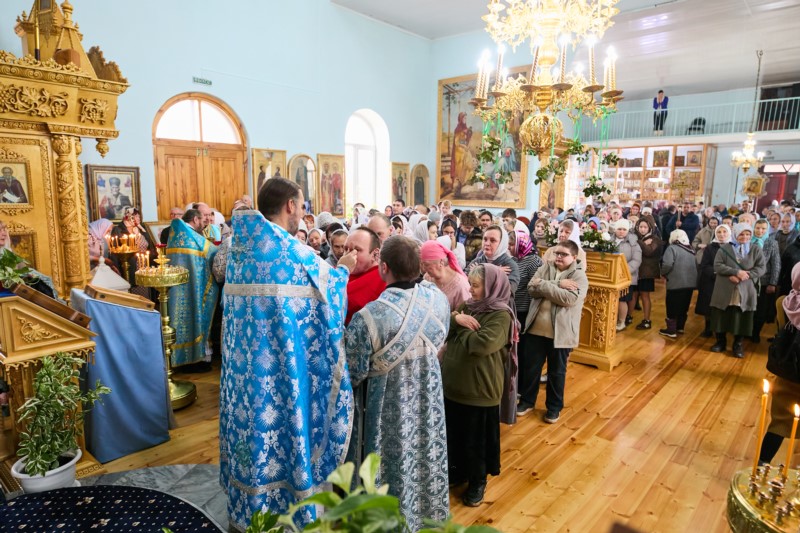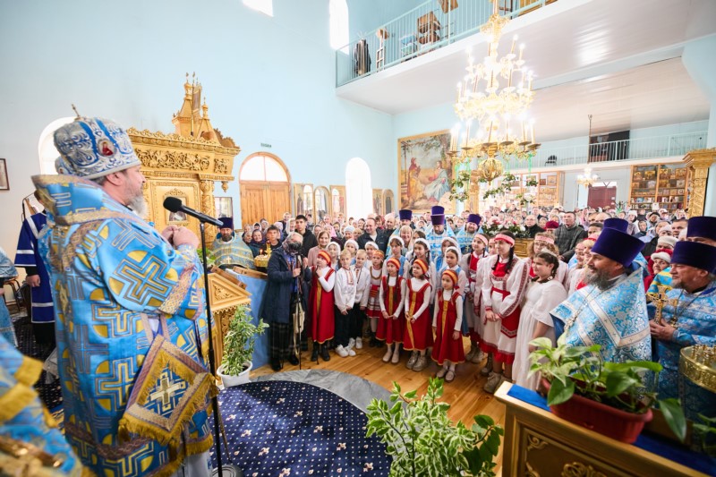 По окончании Литургии владыку митрополита приветствовал епископ Стефан, который поблагодарил Его Высокопреосвященство за визит и совместную молитву, пожелал здравия и помощи Божией. Затем настоятель храма протоиерей Александр Ермолаев поблагодарил митрполита Савватия за соборную молитву и преподнес в дар корзину цветов.