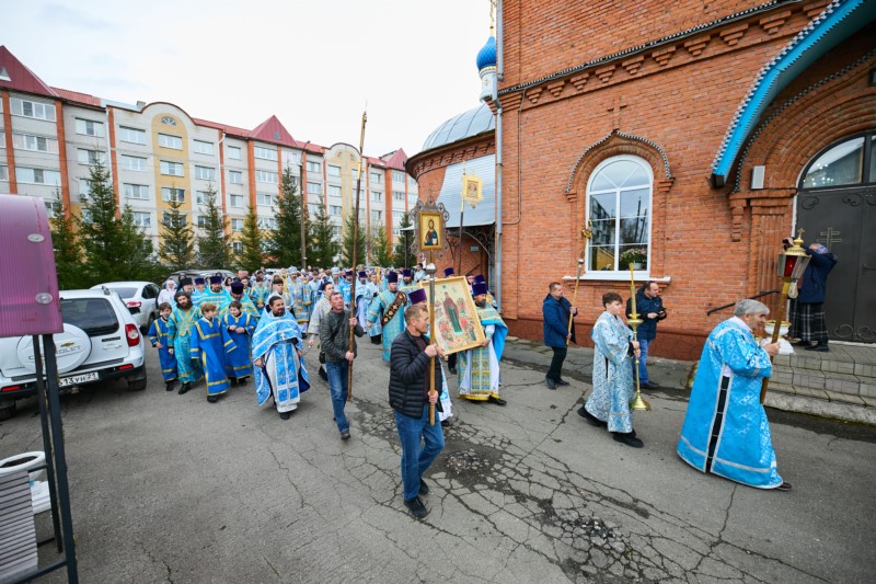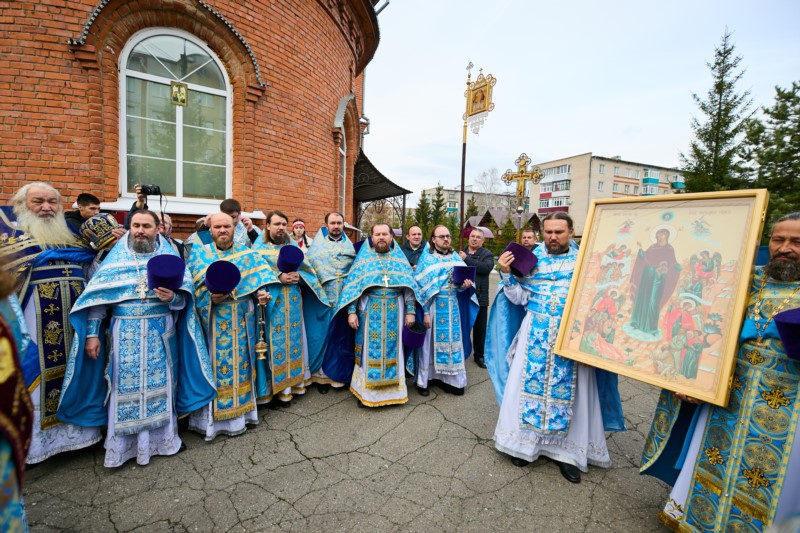 По заамвонной молитве был совершен Крестный ход вокруг храма.