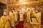 За богослужением молились братия и паломники святой обители.