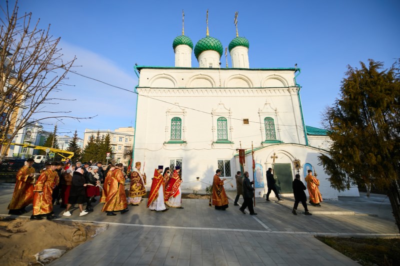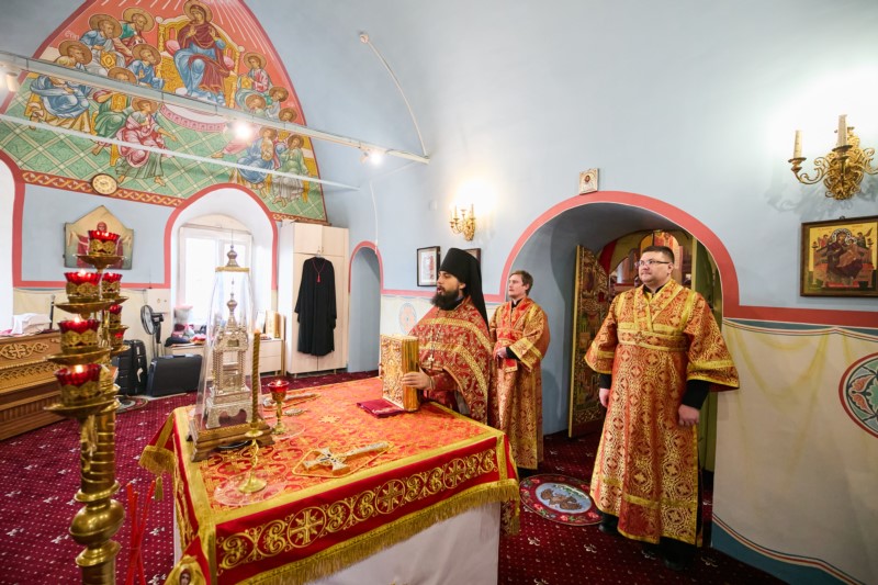 Его Высокопреосвященству сослужили : секретарь Чебоксарской епархии, благочинный городского округа, настоятель храма Новомучеников и исповедников Российских г. Чебоксары иеромонах Иов (Маркелов) и настоятель храма Архангела Михаила руководитель Епархиального отдела по взаимодействию с казачеством протоиерей Александр Федотов и директор Центра подготовки церковных специалистов имени свт. Гурия Казанского Чувашской митрополии иерей Илия Лебедев.