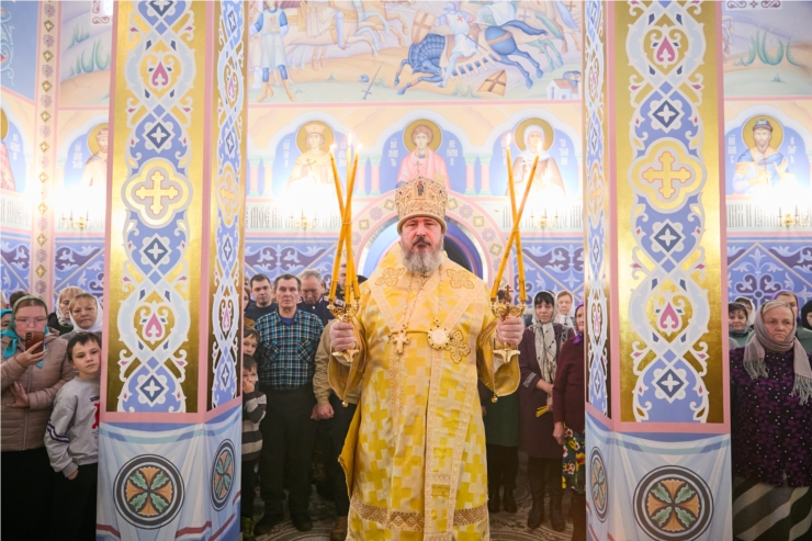 На сугубой ектении были произнесены особые прошения о Святой Руси, по сугубой ектении Владыка совершил молитву.