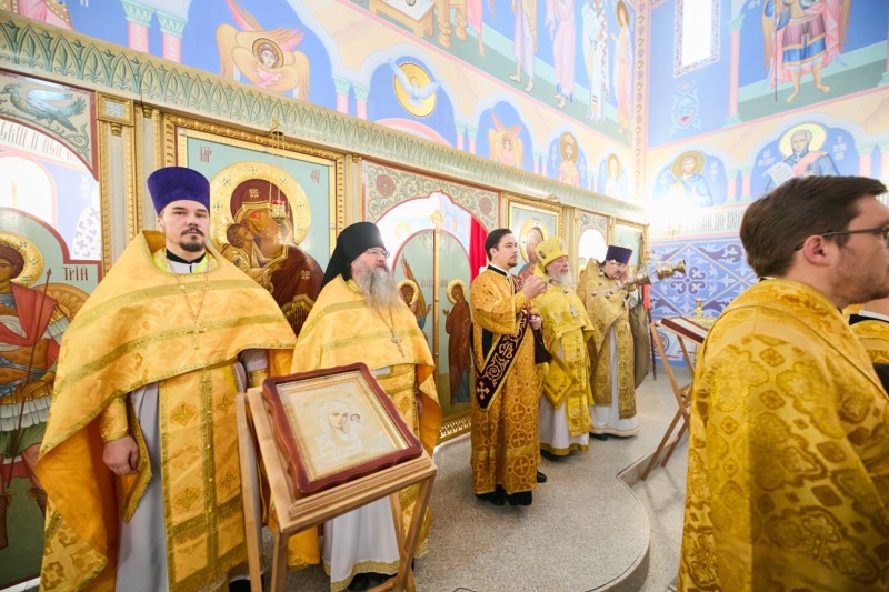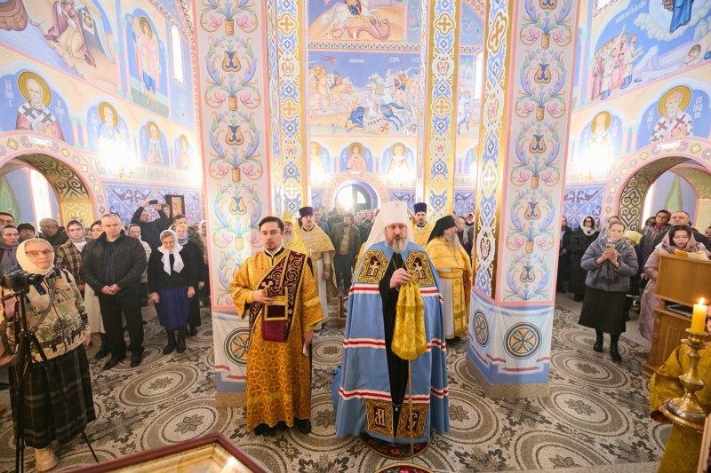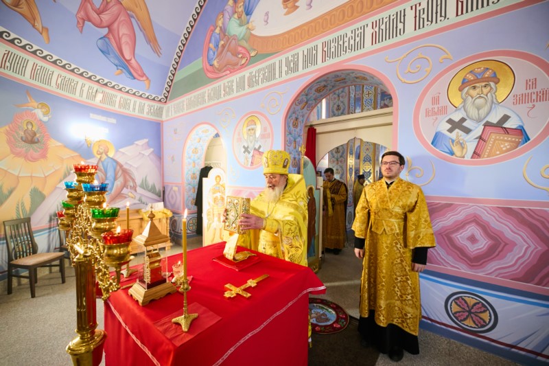 По окончании Божественной литургии настоятель храма иеромонах Феодосий (Аксенов) поблагодарил митрополита Савватия за радость совместной молитвы в воскресный день и преподнёс архипастырю букет цветов.