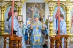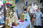 Затем отец настоятель храма поздравил главу митрополии и правящего архиерея с праздником, поблагодарил за Архипастырский визит, соборную молитву и приподнес букеты цветов.