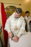 Его Высокопреосвященству сослужили ключарь собора протоиерей Вениамин Пегасов и председатель Епархиального церковного суда, председатель Епархиальной комиссии по брачным вопросам протоиерей Алексей Кошкин. Диаконский чин возглавил диакон Евгений Поляков.