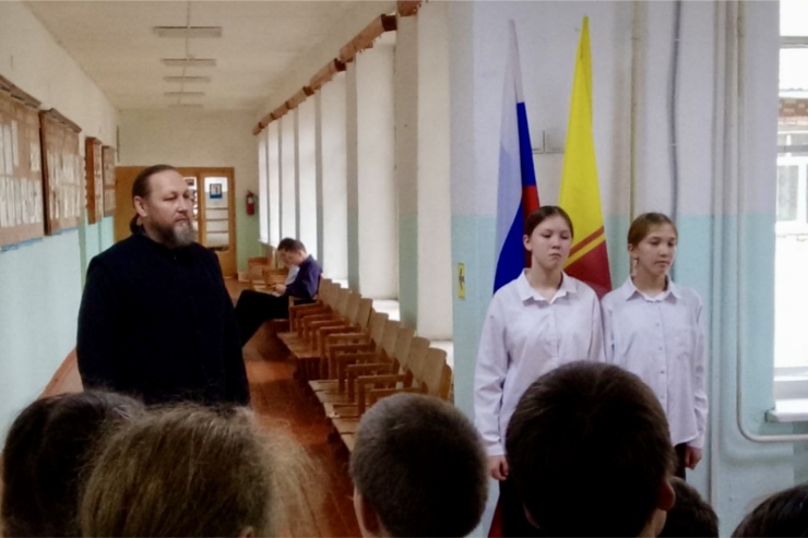 Мероприятие началось с торжественной линейки, на которой с приветственным словом к учащимся, педагогическому коллективу и гостям обратился настоятель храма Введения во храм Пресвятой Богородицы села Первое Чурашево протоиерей Алексий Сорокин.