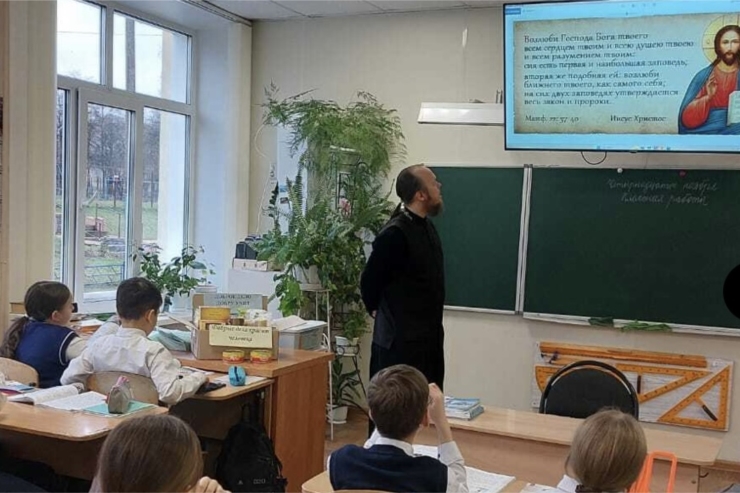 14 ноября 2025 года клирик собора святого князя Владимира г. Новочебоксарск иерей Дионисий Енцов провел беседу с учениками 4 Б класса СОШ № 2 г. Новочебоксарск.