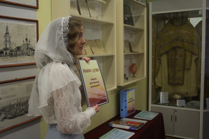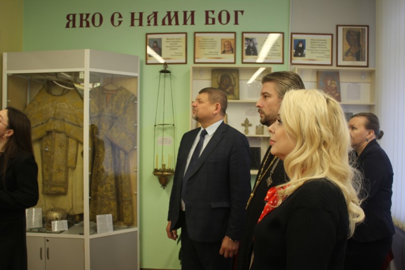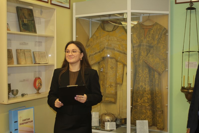 В ходе первой экскурсии по музею гости познакомились с его уникальным фондом: старинными иконами, богослужебными книгами, облачением священнослужителя, метрической книгой и др.