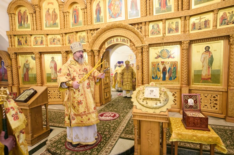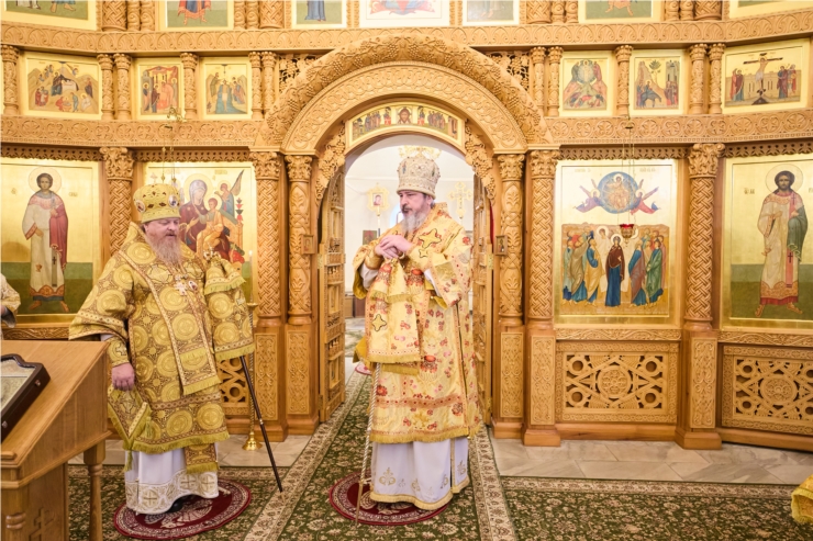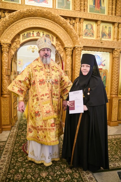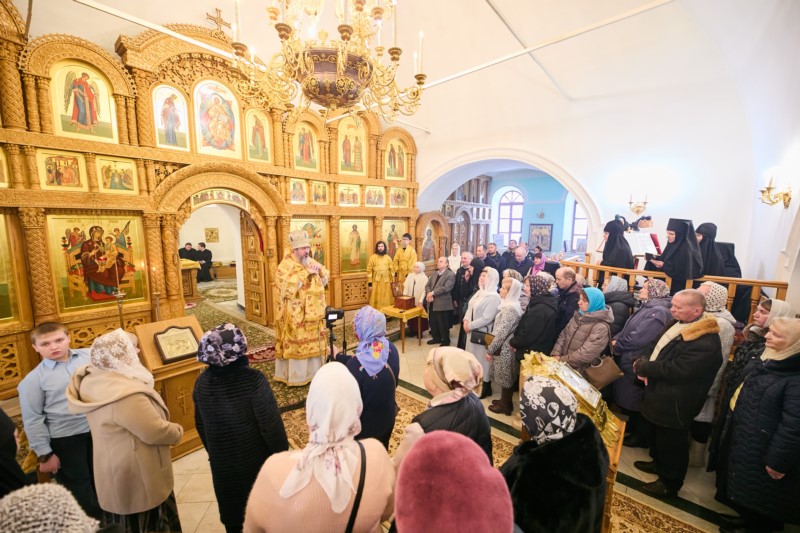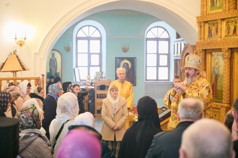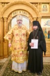 По окончании Литургии владыка Феодосий поздравил главу митрополии с престольным празником обители. Со словами приветствия к Владыке митрополиту обратилась и игумения обители Елизавета (Ванькина).