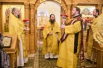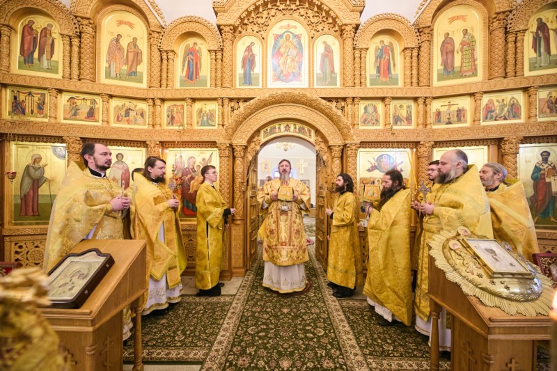 После заамвонной молитве духовенство на середине храма пропело славление святителю Николаю.